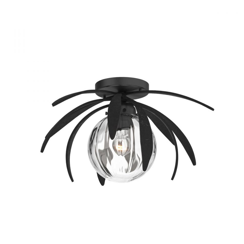 True to the beauty of its namesake flower, the Dahlia Flush Mount fixture provides a sculptural botanic aesthetic. Handcrafted forged steel “petals” flare outward and downward to embrace a glass globe containing a singular light source at its center. Available in 9 standard finishes. In addition to the flush mount, the Dahlia Collection includes chandeliers and mini pendant options to grace any space. Can also be wall mounted as a sconce.